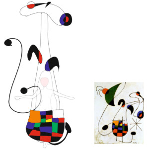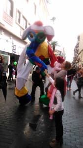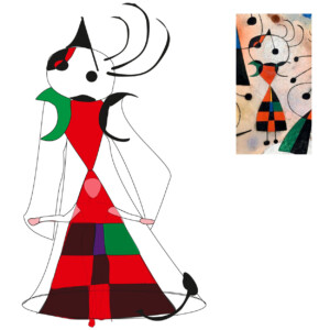 La imaginación de Miró, nos deleita con esta visión de un perro multicolor.¿Y cómo sería un elefante detrás de los ojos de Miró? Este es nuestro visión particular de uno de los personajes que más atrae al público infantil. Este elefante mueve su trompa y sorprende por su desparpajo y su andar alegre y seguro. Una niña traviesa, diferente, que enamora con su mirada y sus elegantes andares. Este personaje de más de 4 metros de altura, lleva mecanismo de ojos, y brazos articulados por varillas.