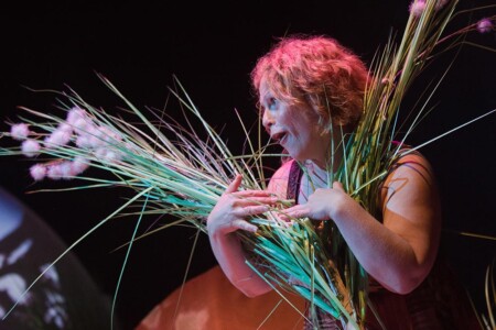 En la arena de la playa, María nos habla de las historias que inventaba a través de los elementos de la naturaleza cuando era pequeña y narra la historia de cómo el travieso duende Puck enreda a las parejas con el jugo de una flor mágica.